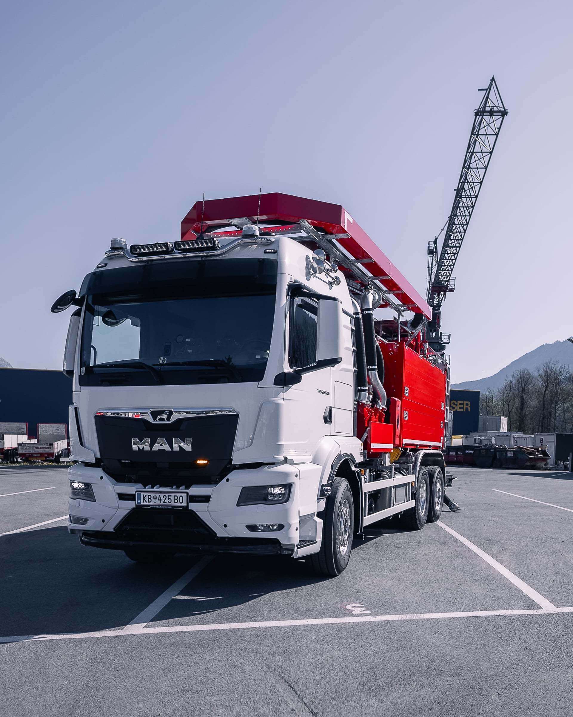Neben lieb gewonnenen Klassikern gibt es auch frischen Zuwachs: Unser neuer W05 auf MAN-Fahrgestell mit maßgeschneidertem Holzmann-Aufbau bereichert ab sofort unseren Fuhrpark. Besonders praktisch: das eigene Fach für die Kummert Easy – für schnelle Einsätze mit Kamera.