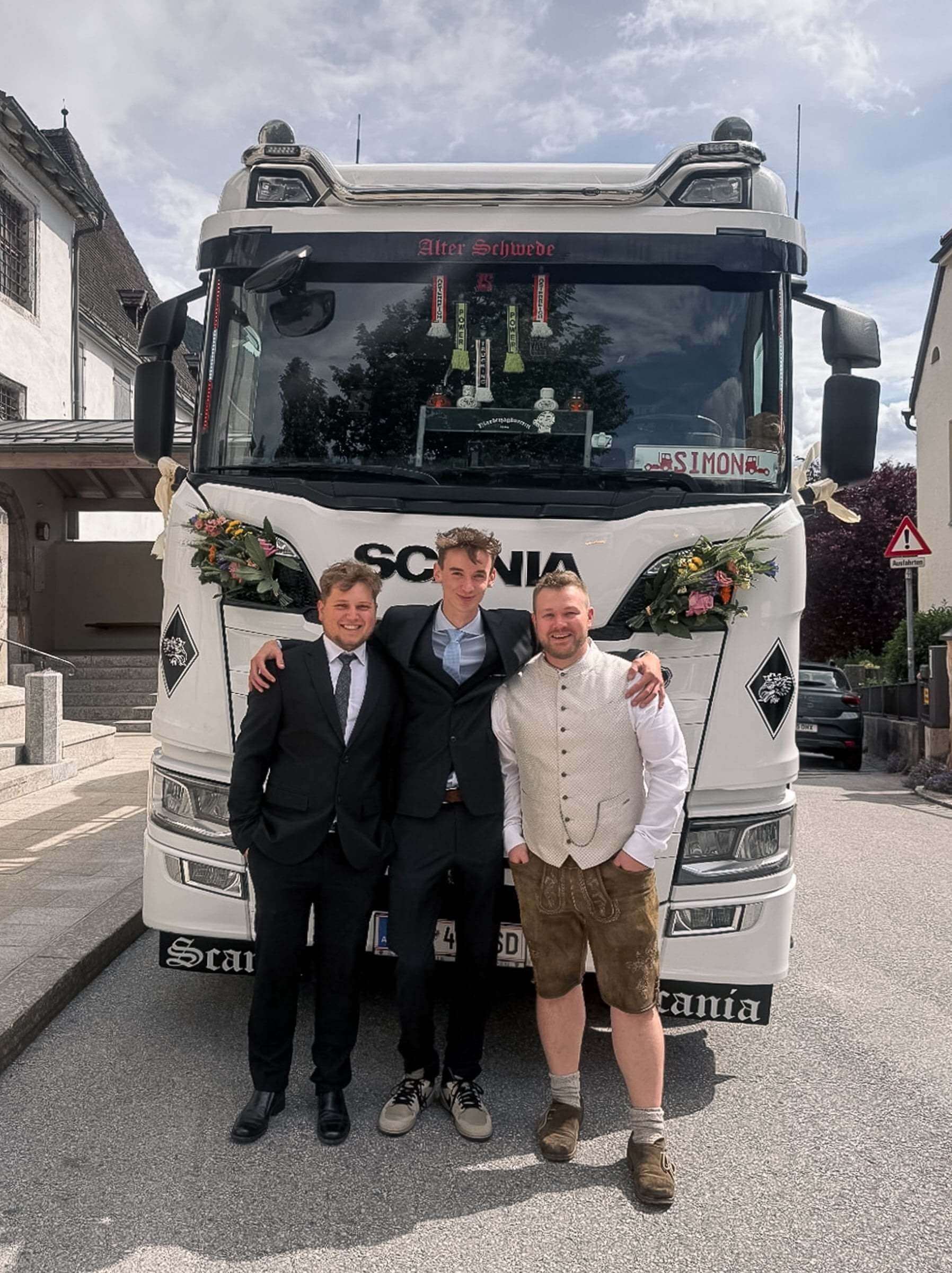 Und dann wurde es emotional: Unser Kollege Simon hat geheiratet – mit dabei natürlich auch sein treuer DAWI-LKW. Gemeinsam mit dem gesamten Team wurde gefeiert, gelacht und gratuliert. Ein ganz besonderer Moment, der uns zeigt, wie stark unser Zusammenhalt wirklich ist.